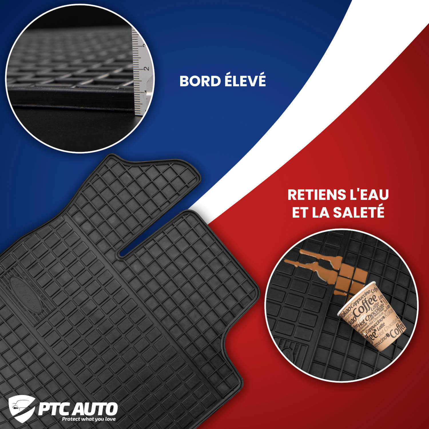 Évitez d'endommager la voiture! Les bords retiennent la saleté et les liquides indésirables sur les tapis.